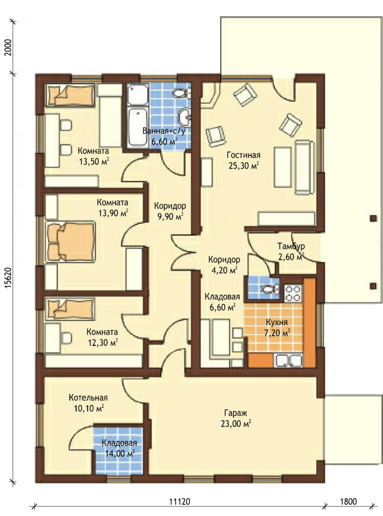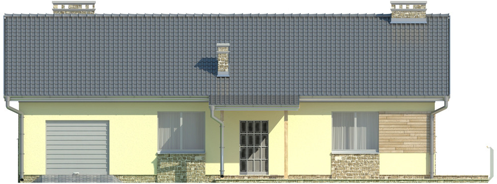 Проект одноэтажного дома с террасой и гаражом P164
