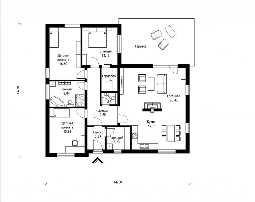 14.25x13.25 м